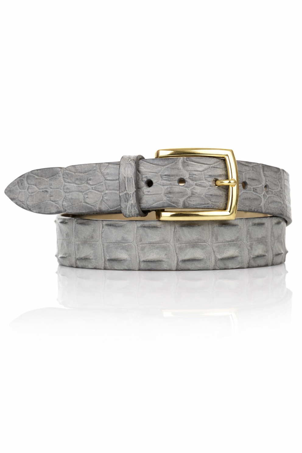 Exclusieve Ambachtelijke Croco leren riem, Riccamente Nardi grijs, licht Gouden gesp