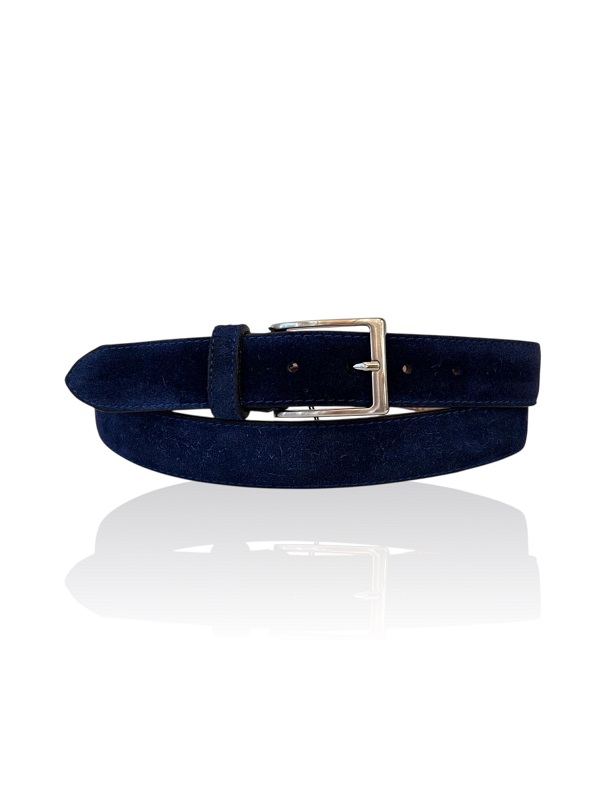 Exclusieve Italiaanse Suede leren riem, Riccamente Damico Velvet blauw 3.5 cm breed