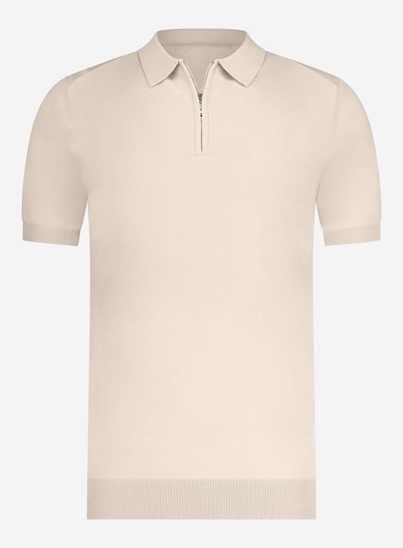 Mooie Riccamente Italiaanse Polo met halve rits Napoli Beige