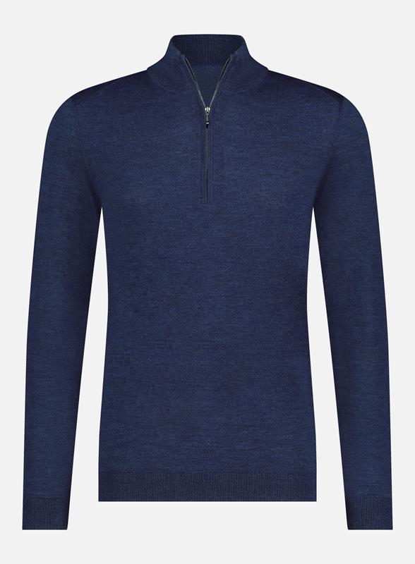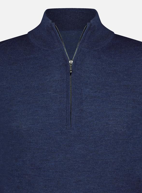 Mooie Riccamente Italiaanse Merino trui, halve rits, Napoli Blauw