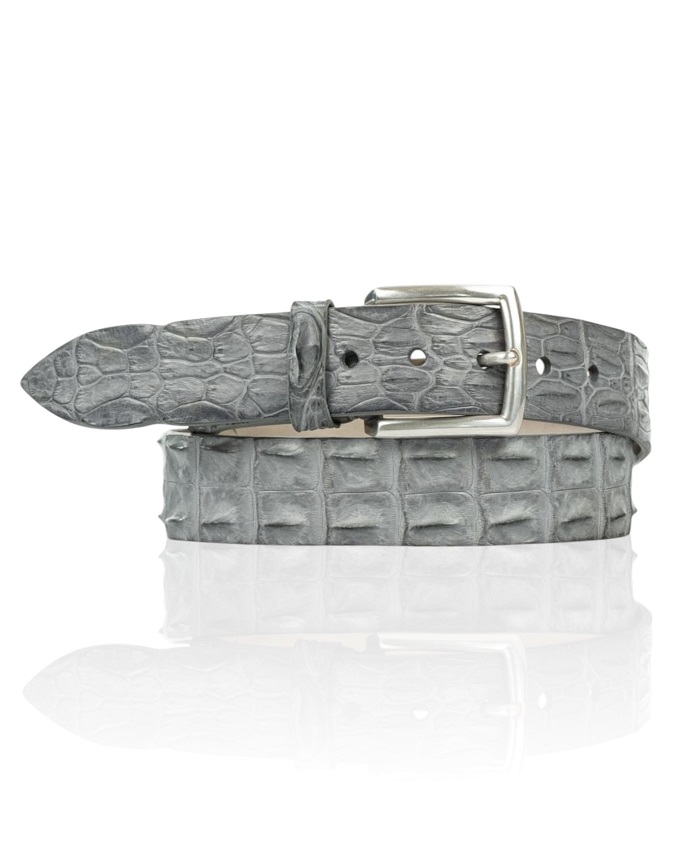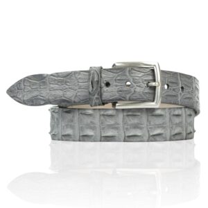Exclusieve Ambachtelijke Riccamente Croco leren riem, Zilveren gesp, Nardi Grijs