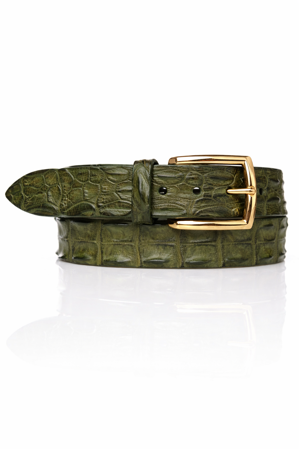 Exclusieve Riccamente Croco leren riem, Amante groen, Licht Gouden gesp